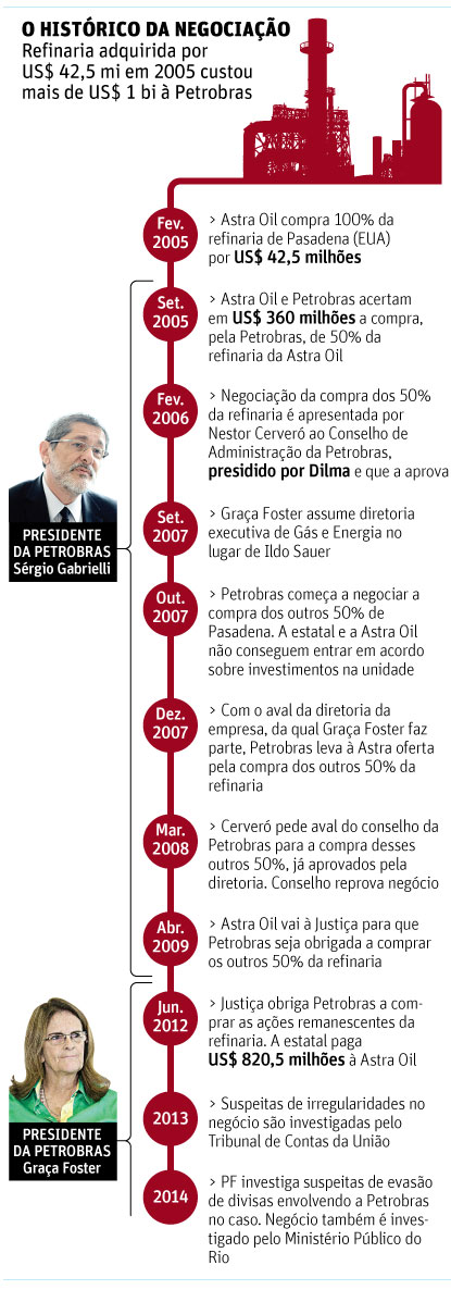 De fato, Graça Foster presidia a subsidiária BR Distribuidora quando a refinaria foi comprada, em 2006. Mas ela assumira a presidência da Petrobras em fevereiro de 2012. Quando falou aos deputados, estava no comando havia um ano e três meses. Conhecia todos os meandros da encrenca de Pasadena. Acabara de excluir a refinaria do Texas do programa de desmobilização de ativos da estatal. Queria vender. Mas não achou quem quisesse pagar algo ao menos próximo do US$ 1,2 bilhão que a Petrobras enterrara no empreendimento.